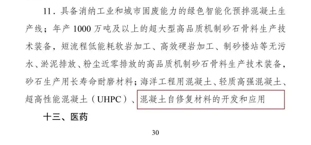 2023年(nián),發改委第7号令《産業(yè)結構調整指導目錄》鼓勵混凝土(tǔ)自(zì)修複材料的(de)開(kāi)發和(hé)應用(yòng)。
